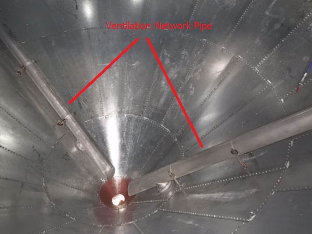 The outer ring duct runs along the silo wall and guides air around the grain bulk. Meanwhile, the inner ducts extend deep into the grain mass. This combination prevents ventilation dead zones. Air passes evenly through every grain, enabling efficient heat and moisture exchange.