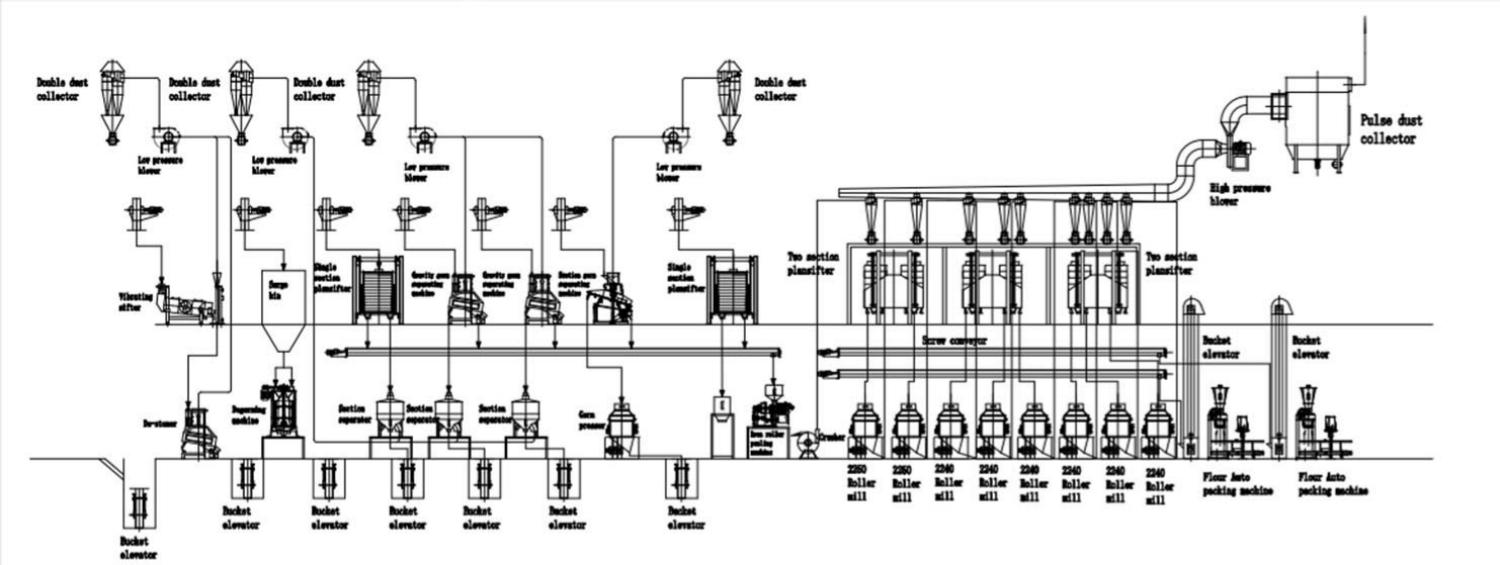 | During operation, the material is subjected to crushing, shearing, peeling, and scraping actions, thereby achieving a certain grinding effect. It is the core equipment of the entire processing line. | It can perform advanced grading of grain flour products such as wheat, corn, and durum wheat. | Pack a measured amount of flour, bran, or other powdery materials into 1-50kg plastic woven bags or paper bags. |